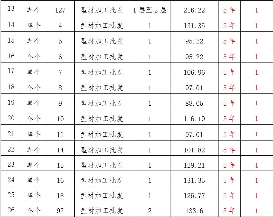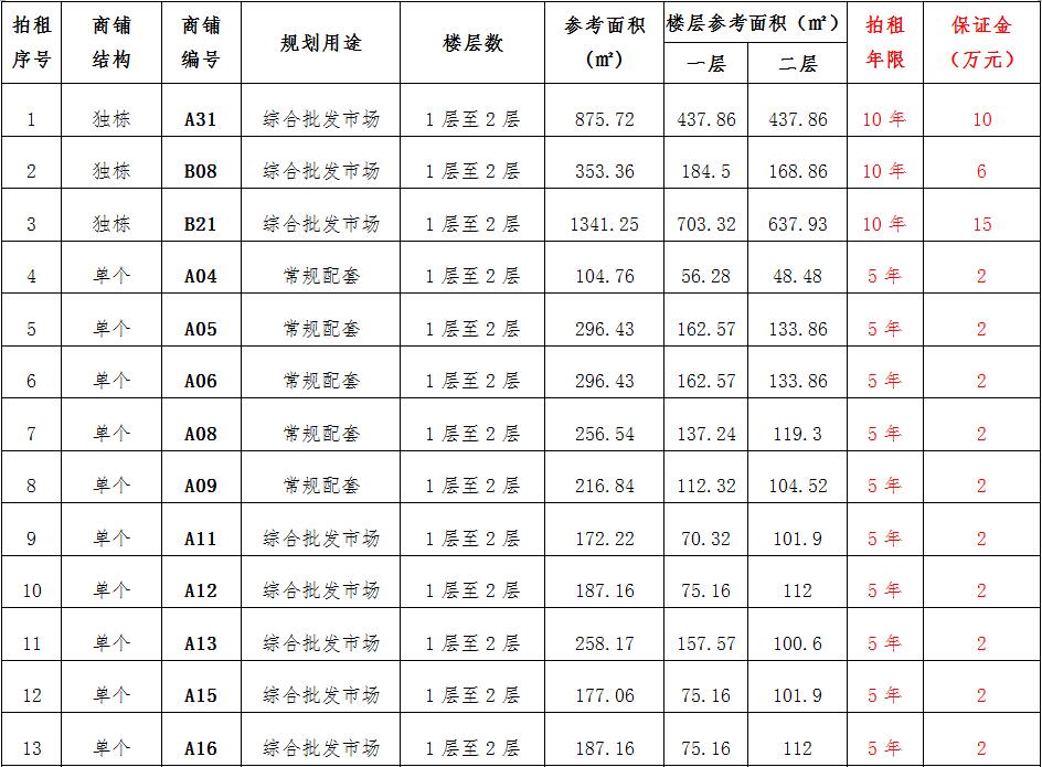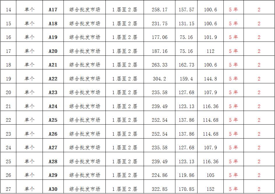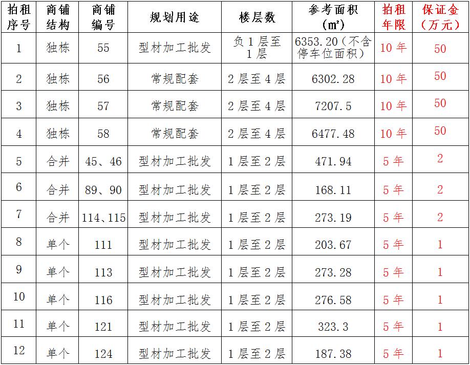 (一)拍租位于鎮(zhèn)雄縣南臺(tái)街道呢嚕坪安置點(diǎn)7棟獨(dú)立商鋪使用權(quán)。以棟為單位拍租。詳見(jiàn)下表: