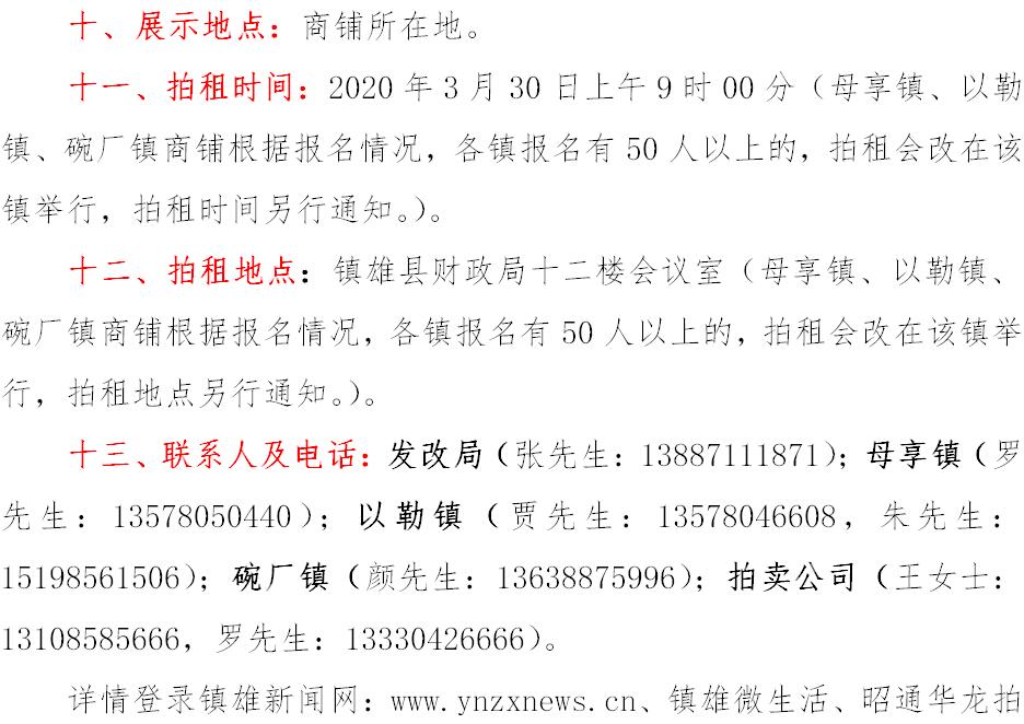 經(jīng)鎮(zhèn)雄縣人民政府批準(zhǔn),受相關(guān)部門(政府)委托,公開(kāi)拍租位于鎮(zhèn)雄縣易地扶貧搬遷工程呢嚕坪安置點(diǎn)7棟獨(dú)立商鋪使用權(quán)、高山大地安置點(diǎn)27間(棟)商鋪使用權(quán)、魯家院子安置點(diǎn)24間(棟)商鋪使用權(quán)、母享安置點(diǎn)146間商鋪使用權(quán)、以勒物流城安置點(diǎn)67間(棟)商鋪使用權(quán)、碗廠安置點(diǎn)114間商鋪使用權(quán)。相關(guān)事項(xiàng)如下: